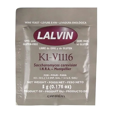 Lalvin K1-V1116 - универсальные дрожжи для всех типов вин, у которых остановилось брожение или не хватает «диких дрожжей» для хорошего хода брожения. Их структура отлично подходит для того, чтобы «завести» неактивное сусло с остановившимся или с пассивным брожением.